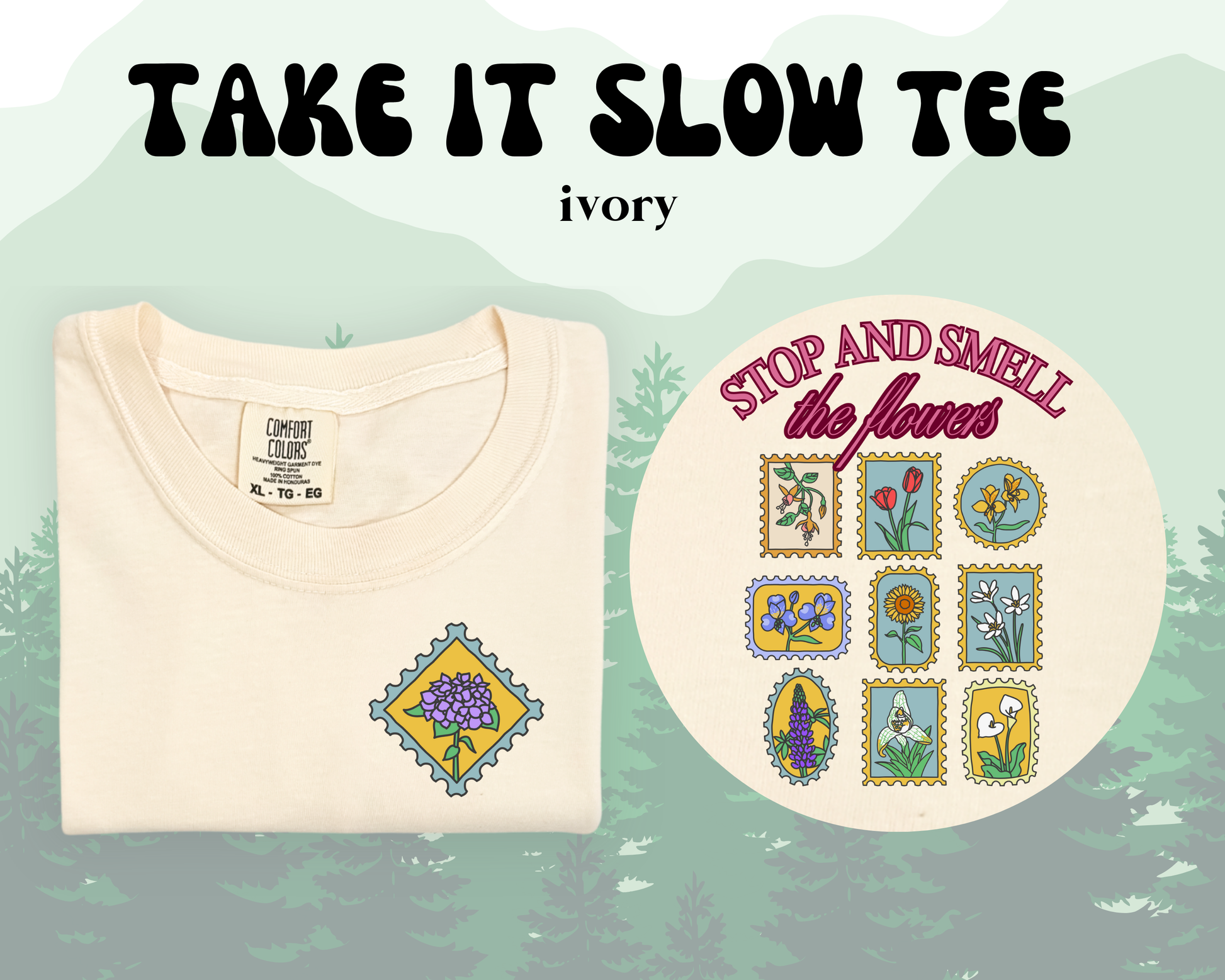 Embrace a moment of calm with the TAKE IT SLOW tee. Designed to remind you to stop, smell the flowers, and savor life’s simple joys. Perfect for those who value mindfulness and peaceful living!